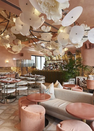 The striking decor boasts glowing baobab light installations overhead are the showstoppers of the room, perfectly complementing the playful animal prints and pink and gold decor. It is chic, glamorous and irresistibly instagram-worthy.