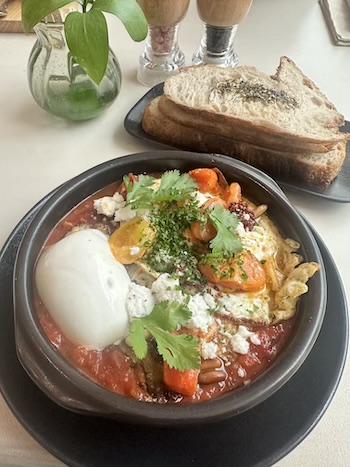 The all-day breakfast menu features an array of eggs with a creative twist. We indulged in the Shakshouka with burrata—a rich, slow-simmered tomato base infused with aromatic spices for an extra depth of flavor. Instead of the usual baked eggs, we were served perfectly fried eggs with golden, crispy edges, complementing the velvety, creamy burrata beautifully. The warm, fluffy bread was generously sprinkled with fragrant za’atar, adding a delightful herby taste.