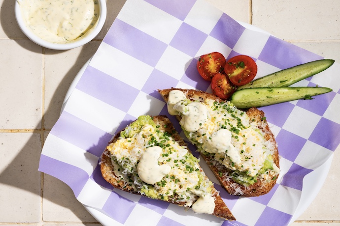 The Egg Parm Toast-with avocado, tangy mayo, parmesan and mixed herbs-is filling and delicious. We topped it with the the signature Chilli Crisp for some extra kick.