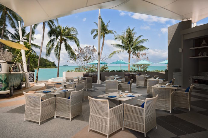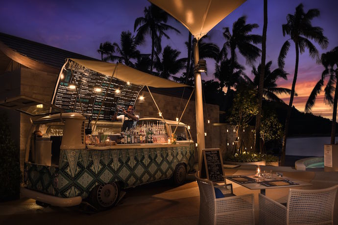 Stretching out before us in the distance is Ko Si Ko Ha or Four Islands-Five Islands, named so because the fifth one is hiding so you can only see it when you’re out at sea. As dining settings go, it’s pretty perfect, with extra character courtesy of the bright blue and turquoise backsplash tiles along the walls and wicker lights hanging down. There’s also a too cool for school Kombi Van bar which doles out delicious cocktails and mocktails.